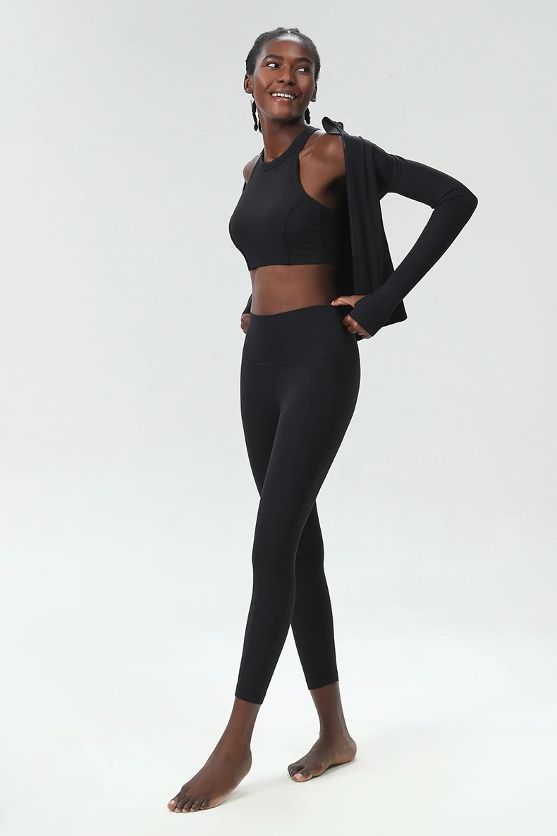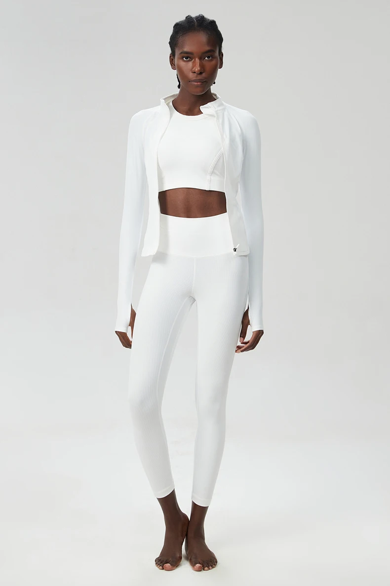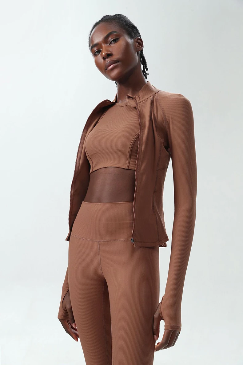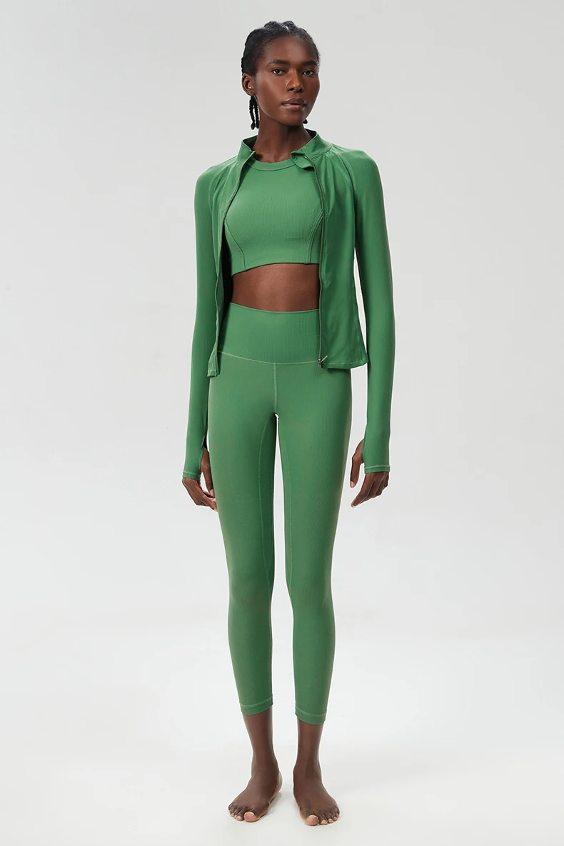 Women's 3-Piece Workout Set | Long Sleeve Ribbed Yoga Sportswear