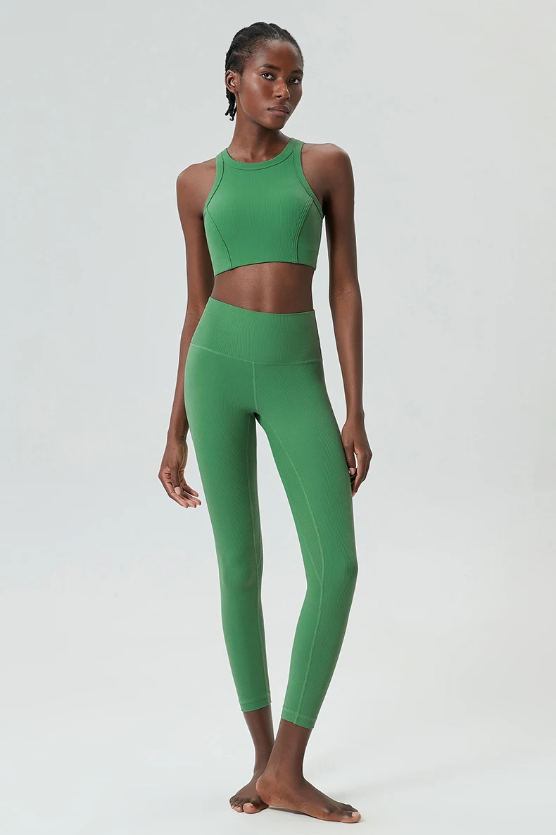 Elevate your workout wardrobe with this stylish and functional 3-piece ribbed set. Designed for maximum performance and comfort, this coordinated gym suit includes everything you need for yoga, running, or the gym. The solid color design offers a sleek, modern look, while the breathable, supportive fabric keeps you focused on your fitness goals.