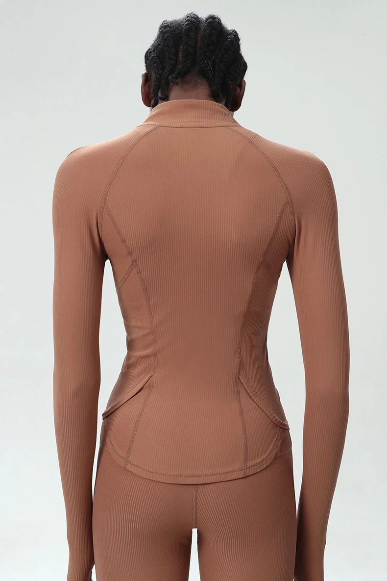 Women's 3-Piece Ribbed Yoga Set - Breathable Long Sleeve Sportswear for Fitness & Running