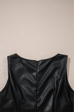 Black Faux Leather Sleeveless Round Neck Mini Dress