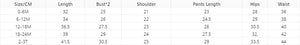 Specifications: 0M-6M, 6M-12M, 12M-18M, 18M-24M, 2T-3T