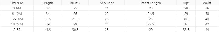 - Sizes: 0M - 6M to 2T - 3T — fits infants and toddlers