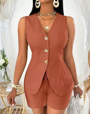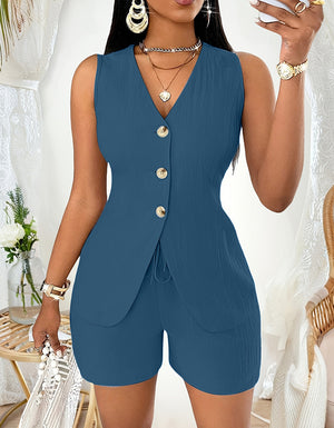 - Style: Two-Piece Set (Sleeveless Top + Shorts)