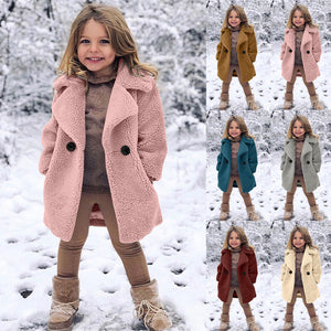 Girls' Fashion Lapel Solid Color Trench Coat