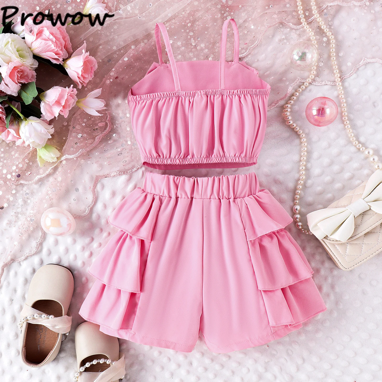 Pro wow Girls Summer Outfit Set - Fashionable 3D Floral Top & Pleated Shorts