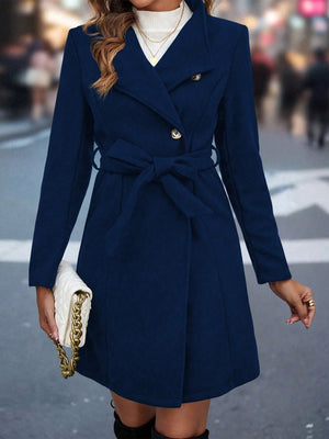 Effortlessly elegant and endlessly versatile, this mid-length belted coat is a cold-weather essential for the modern woman. Featuring a sleek stand collar, a single-button closure, and a defining self-tie belt, this coat creates a flattering silhouette suitable for any occasion. Tailored from 100% polyester with a clean, minimalist design, it’s the perfect outerwear piece for commuting, office wear, weekend errands, or evening events. From the boardroom to a brunch date, this coat adds a touch of polished sophistication to any autumn or winter ensemble.