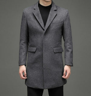 Men's Long Sleeved Woolen Coat