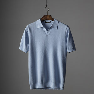 Men's V-Knit Lapel Top | Short Sleeve Knit Shirt
