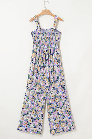 Women's Purple Floral Jumpsuit | Square Neck High Waist Stretch