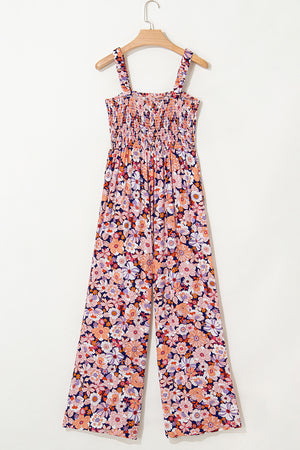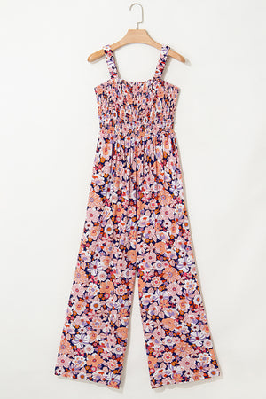 Women's Floral Print Jumpsuit - Square Neck Sleeveless Boho Romper