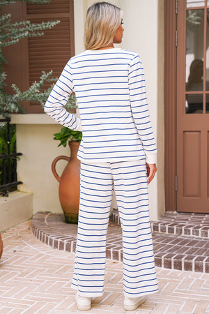 Sail Blue Striped Long Sleeve Pullover and Wide Leg Pants Set