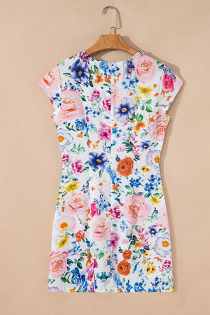 Sky Blue Vibrant Floral Print Cap Sleeve Mini Dress