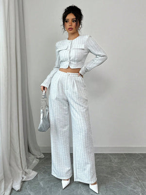 Ideal for work, casual outings, romantic dates, or vacation wear, this ensemble effortlessly blends classic texture with modern versatility.