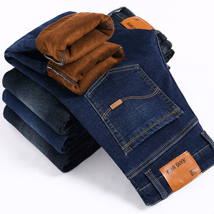 Men's Loose Fit Straight Leg Jeans | Plus Velvet Lined Casual Pants