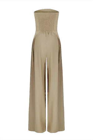 Embrace sophisticated style with this chic backless tube top jumpsuit. Designed for the modern woman, it combines a sleek, sleeveless bodice with a flowing wide-leg silhouette that creates a long, elegant line. The loose, comfortable fit and elegant style make it a stunning choice for summer weddings, garden parties, or any occasion where you want to look effortlessly polished.