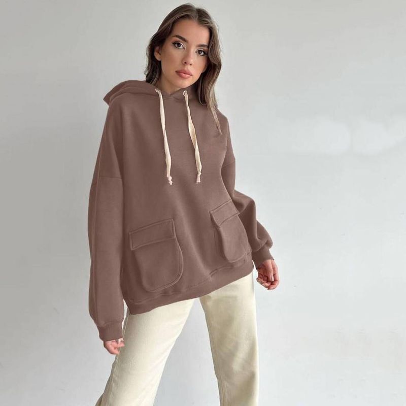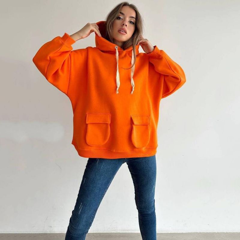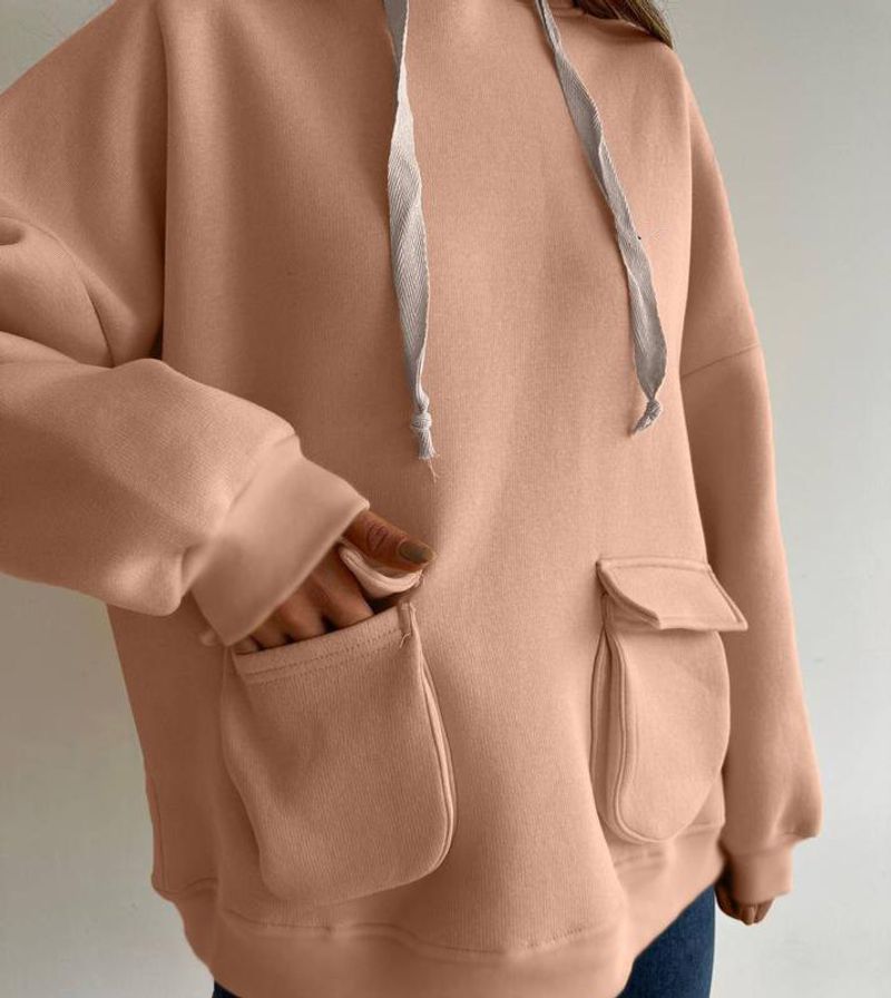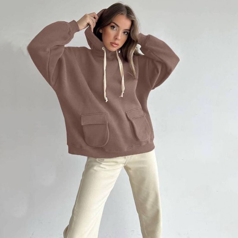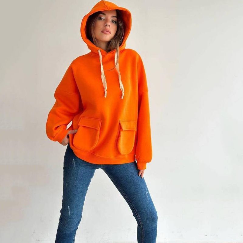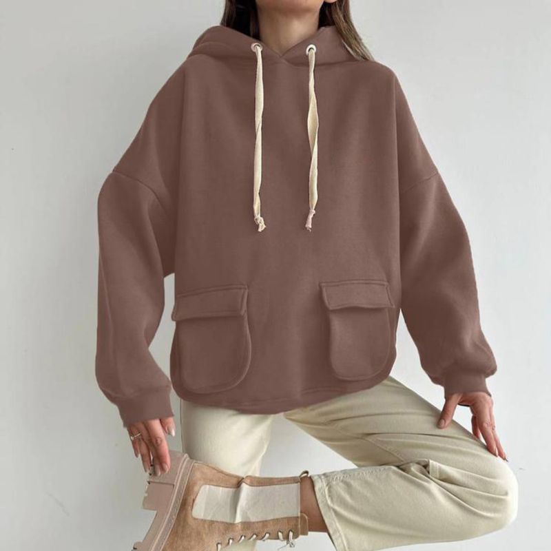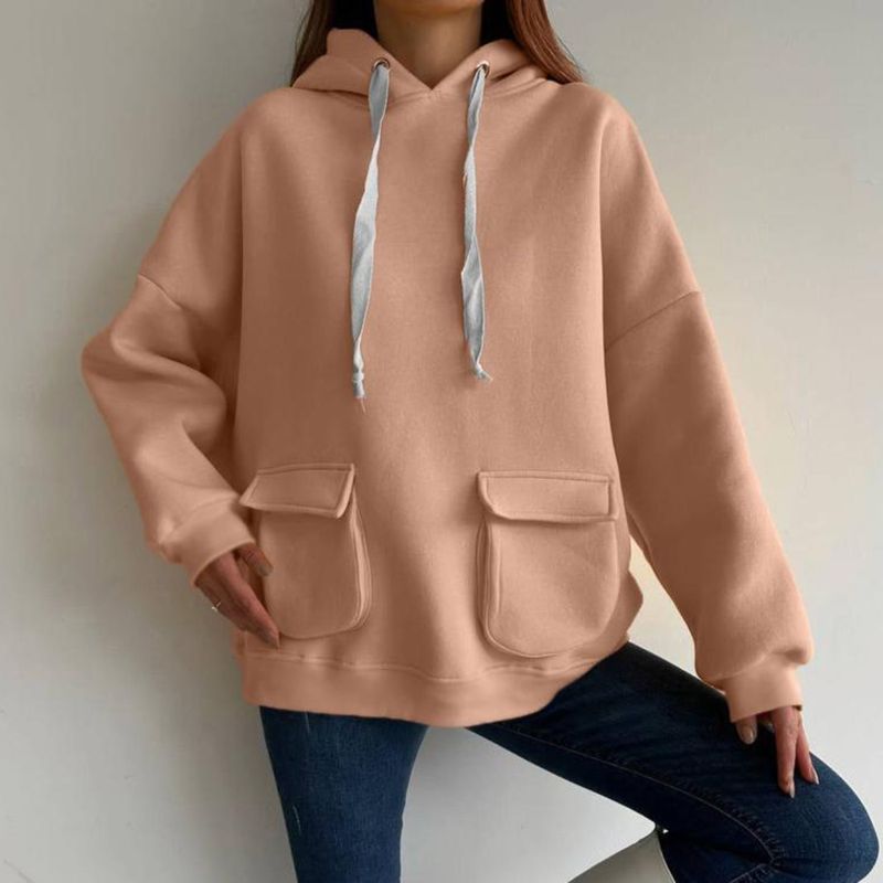 Women's Hooded Fleece Pullover | Loose Fit Pocket Sweatshirt