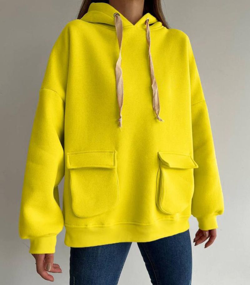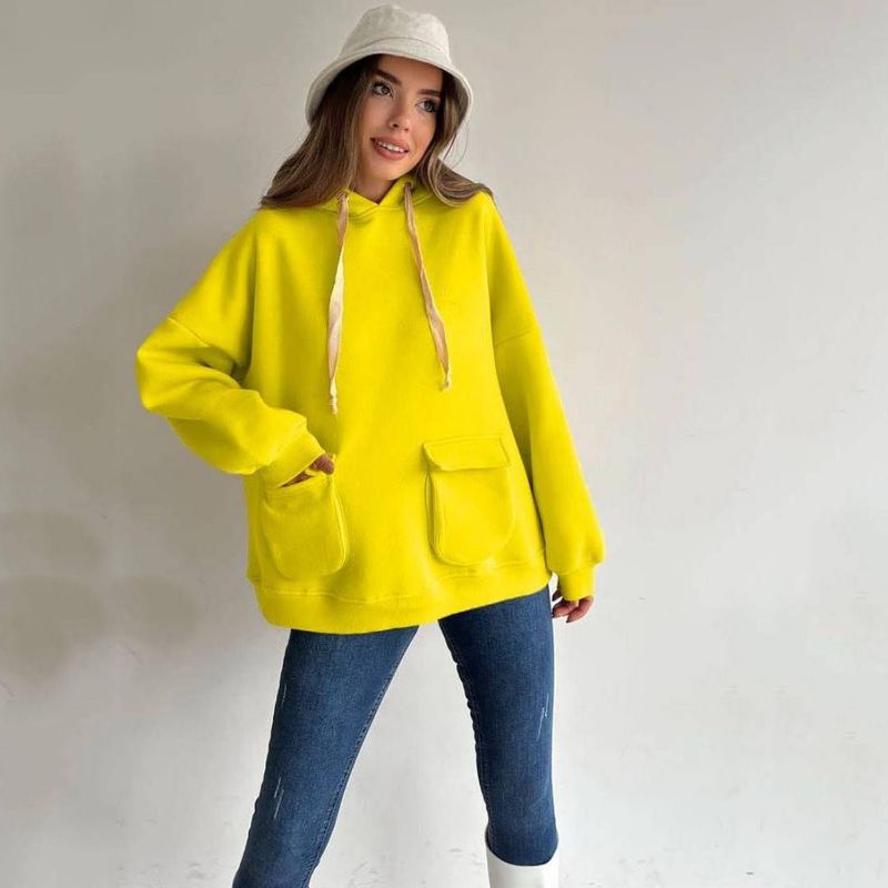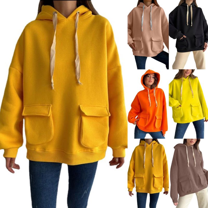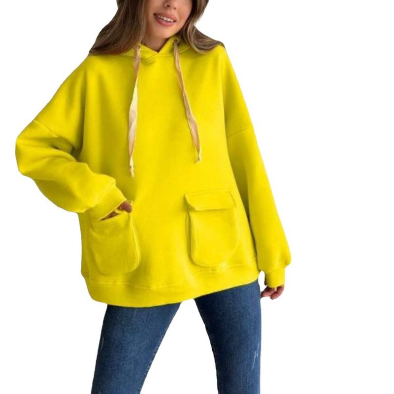 Women's Loose Fit Fleece Sweatshirt - Long Sleeve Hooded Pullover with Pocket