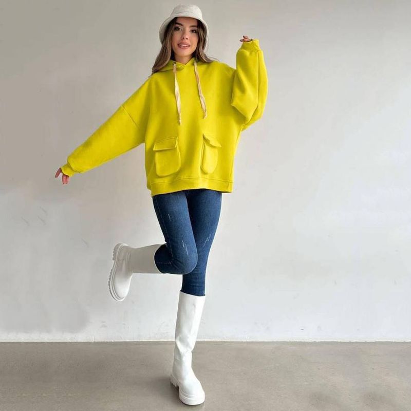Embrace relaxed, casual vibes with our Cozy Fleece Hoodie. Designed for maximum comfort, this women's top features a soft, plush fleece interior, a roomy front pocket, and a adjustable hood—making it your perfect companion for chilly days, lounging at home, or running errands in style.