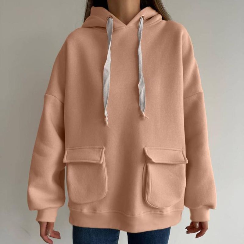 Cozy Oversized Fleece Hoodie - Women's Long Sleeve Pocket Sweatshirt.