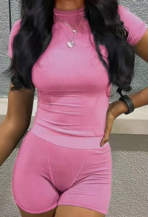 Women's Solid Color Two-Piece Set | Short Sleeve Top & Shorts